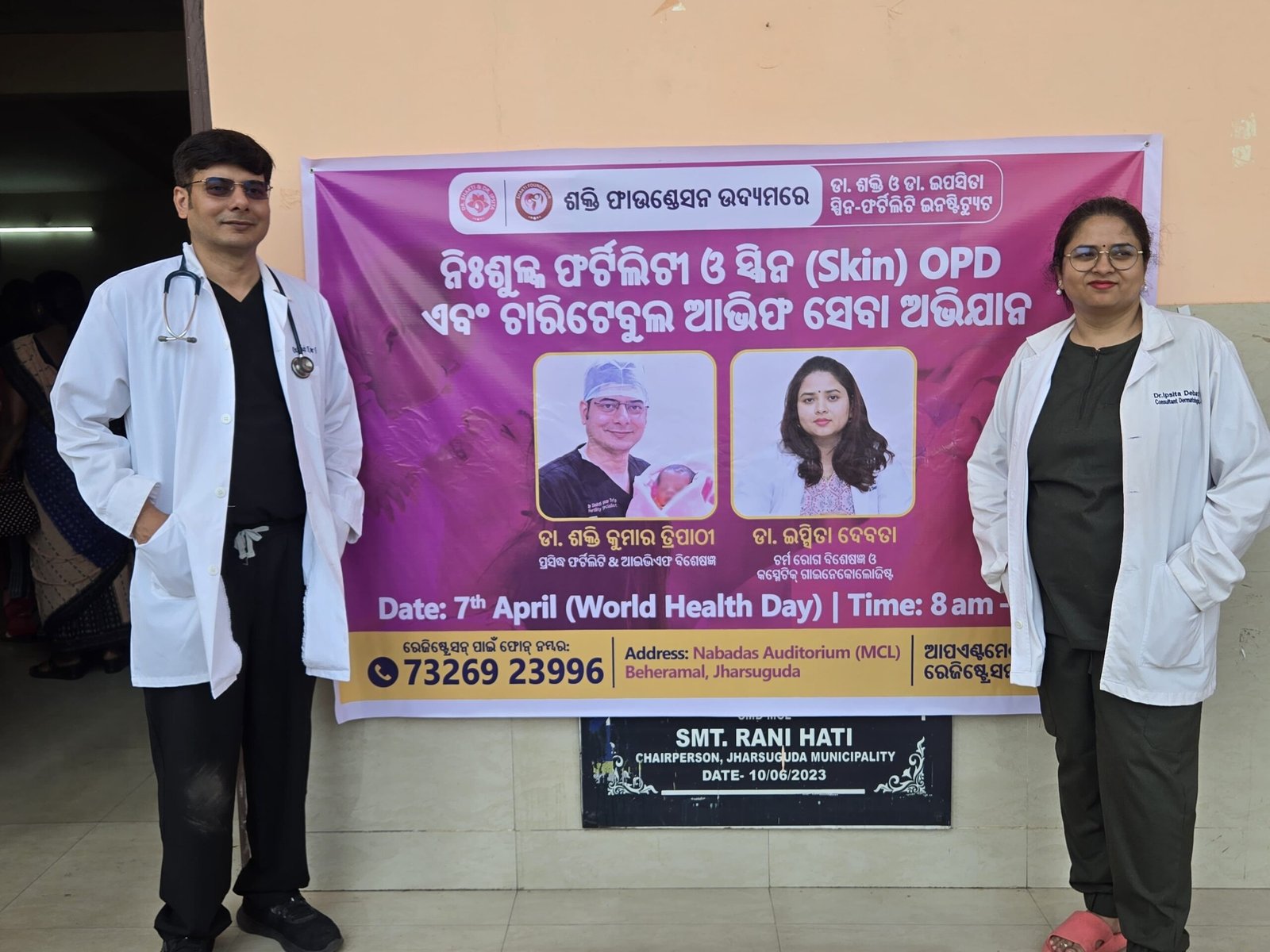 ବୈବାହିକ ଜୀବନର ଦୀର୍ଘ ବର୍ଷ ପର୍ଯ୍ୟନ୍ତ ଗର୍ଭଧାରଣ କରି ନପାରିବା ହେତୁ ପରିବାରରେ ଅଶାନ୍ତି ଲାଗିରହେ l ସମାଜରେ ଅନେକ ଟାହି ଟାପରା ମନକୁ ବହୁତ ଅଶାନ୍ତ କରେ l ବର୍ତ୍ତମାନର ଶିକ୍ଷିତ ସମାଜରେ ମଧ୍ୟ ପ୍ରାୟ ସମସ୍ତେ ଅନ୍ଧ ବିଶ୍ୱାସରେ ଥାଆନ୍ତି l ଗର୍ଭଧାରଣ ନକରିପାରିବା କାରଣ ପାଇଁ ସମସ୍ତେ ସ୍ତ୍ରୀଙ୍କୁ ଦୋଷ ଦେଇଥାନ୍ତି l ହେଲେ ଏହି ସ୍ଥିତିରେ ଉଭୟ ସ୍ୱାମୀ ଏବଂ ସ୍ତ୍ରୀ ଦାୟୀ ଥାଆନ୍ତି l ତେଣୁ ସେଥିରୁ ମୁକ୍ତି ପାଇଁ ଡାକ୍ତର ଶକ୍ତି ଓ ଡାକ୍ତର ଇପ୍ସିତା ସ୍କିନ-ଫର୍ଟିଲିଟି Institute ତରଫରୁ ଶକ୍ତି ଫାଉଣ୍ଡେସନ ଉଦ୍ୟମରେ ଝାରସୁଗୁଡା ସ୍ଥିତ ନବ ଦାସ ଇଣ୍ଡୋର ଷ୍ଟାଡିଅମ ଠାରେ ଏକ ମାଗଣା ସ୍ୱାସ୍ଥ୍ୟ ଚିକିତ୍ସା ସଚେତନତା ଶିବିର ଅନୁଷ୍ଠିତ ହୋଇଥିଲା l ସ୍ତ୍ରୀ ରୋଗ ବିଶେଷଜ୍ଞ ଡାକ୍ତର ଶକ୍ତି କୁମାର ତ୍ରିପାଠୀ ଏବଂ ଡାକ୍ତର ଇପ୍ସିତା ଦେବତାଙ୍କ ଦ୍ୱାରା ଏହି ମାଗଣା ସ୍ୱାସ୍ଥ୍ୟ ଶିବିରରେ ପ୍ରଜନନ ଓପିଡି (OPD) ଏବଂ ଦାତବ୍ୟ ଆଇଭିଏଫ (IVF) ଆୟୋଜନ କରାଯାଇଥିଲା l